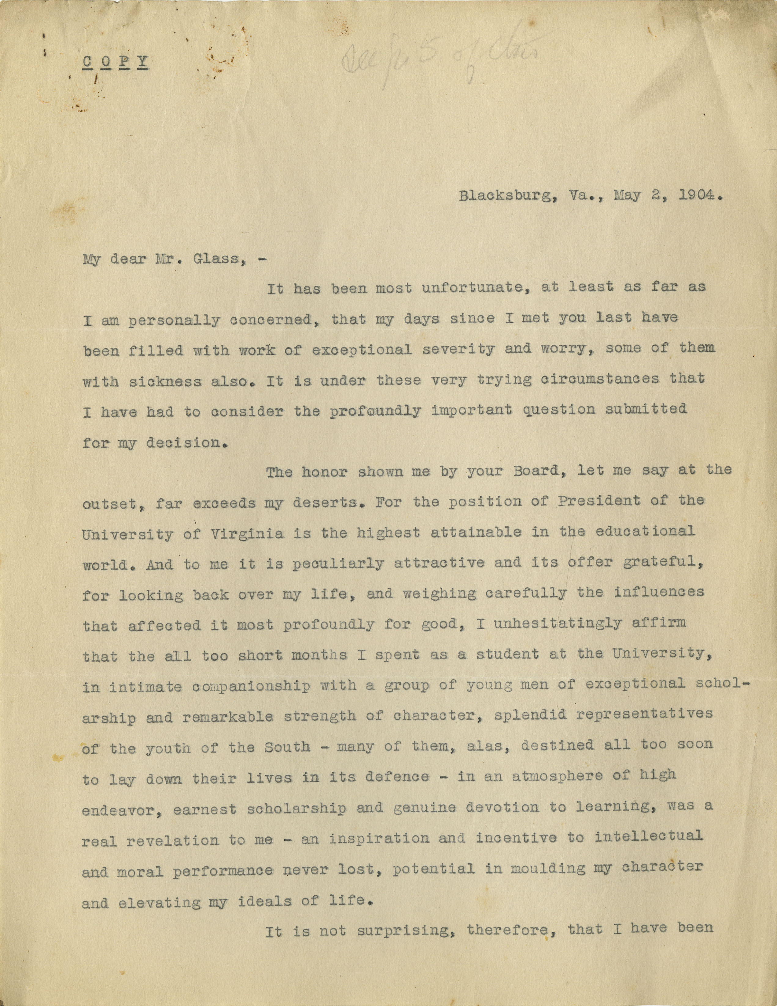 McBryde’s 1904 letter to Carter Glass
